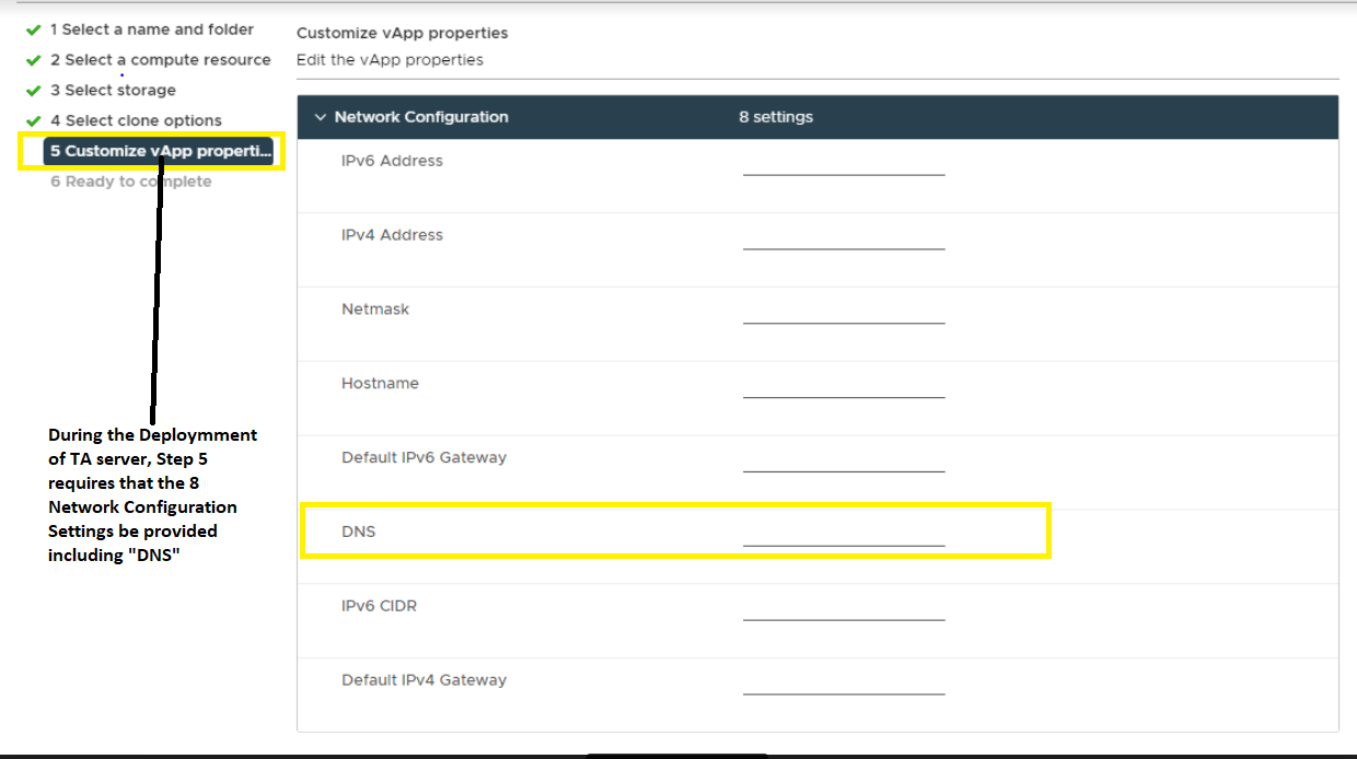 4. Note that During the deployment of the TA server, DNS settings can be provided.