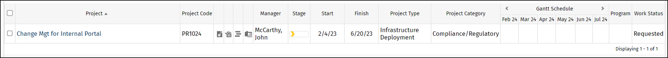 Classic UI List View: The previous value is retained in the Project Category field and the new value on Project Type is saved