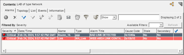 10. When the port goes down, an alarm is generated on the WA_Link model.