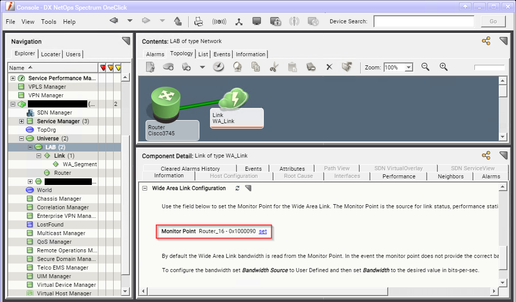 When the WA_Link is created by the Spectrum Discovery feature there is no issue.