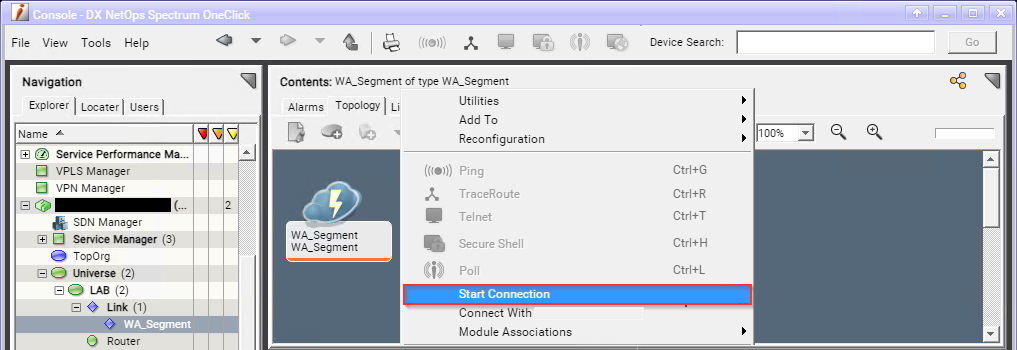 7. Right-click the WA_Segment and select the "Start Connection" option.