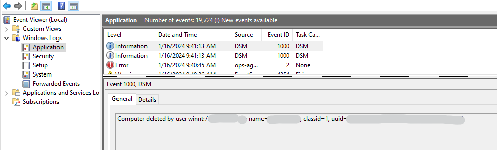 Someone has deleted a computer in DSM Explorer, is it possible to know who and when ?