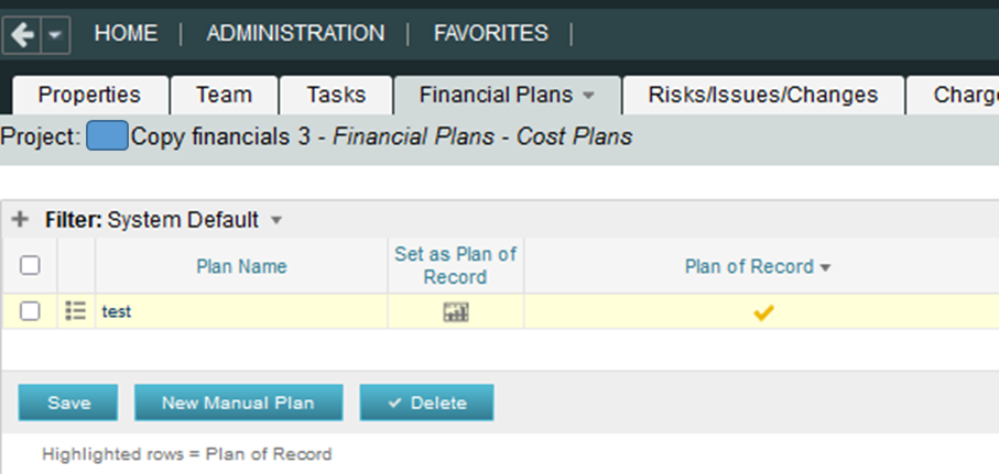 NOTE ABOUT THE “FINANCIAL PLANS” MODULE: Broadcom is announcing the deprecation of the Project Financial Plans module, which is scheduled to be removed in the May 2024 release (16.2.2). The Project Financial Plans module will no longer be enhanced, and maintenance and technical support will be discontinued effective May 20, 2024. Customers should use the Project Financials module in lieu of this functionality.