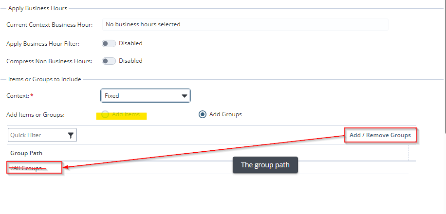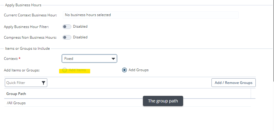 Click on Add/Remove Groups, remove All Groups and then the "Add Items" can be selected.