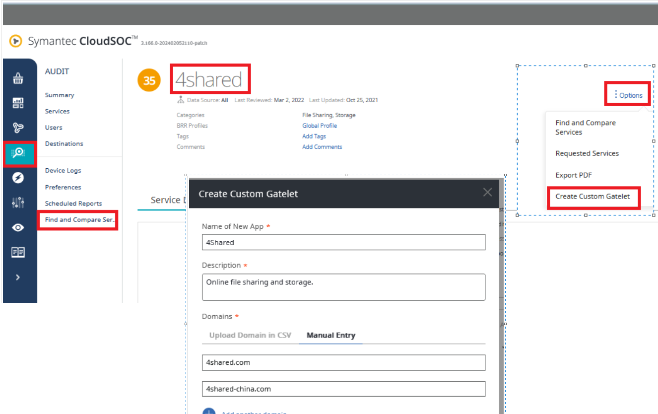 4shared gatelet was deprecated and documented in the release notes for CASB 3.142.