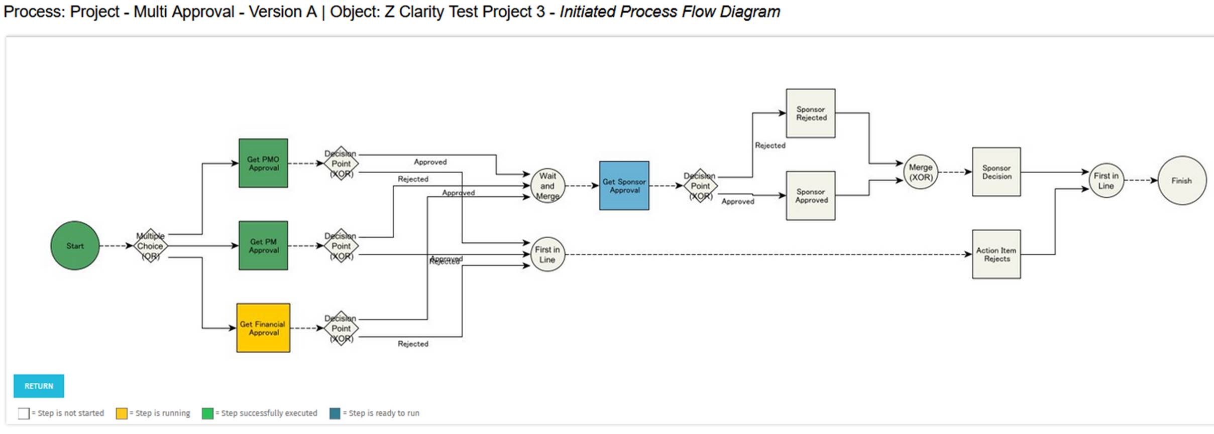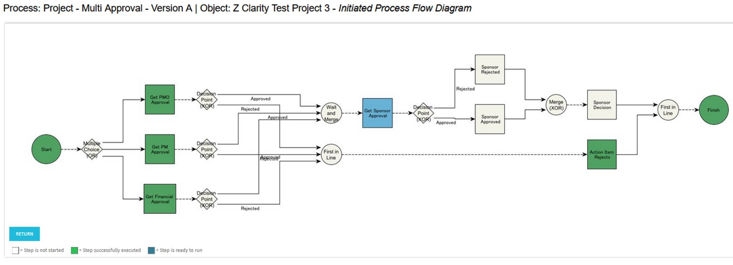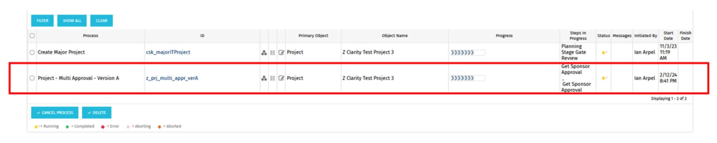 4.This is because the "Get Sponsor Approval" step is waiting for 'ALL' user responses before it can enter the step.