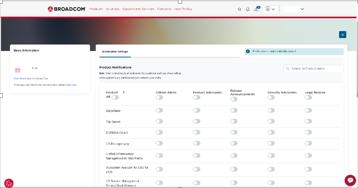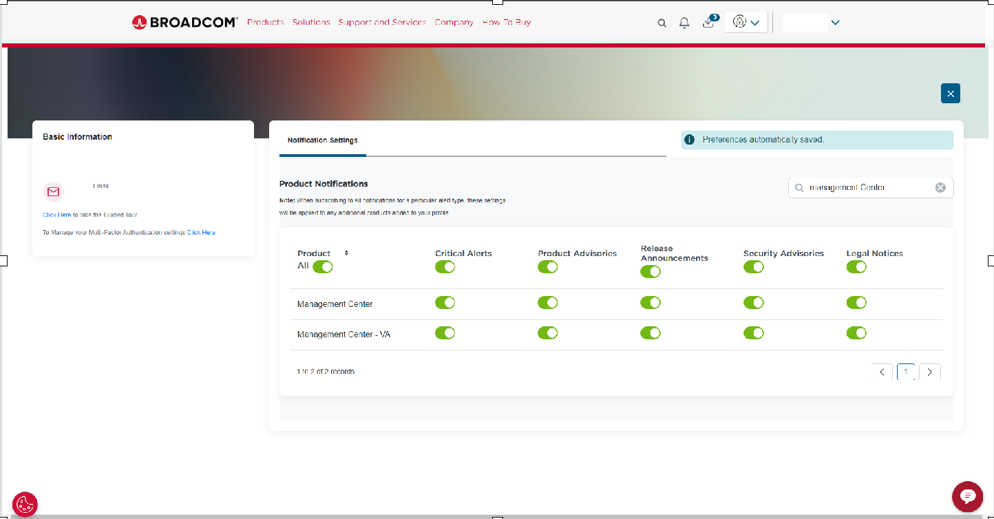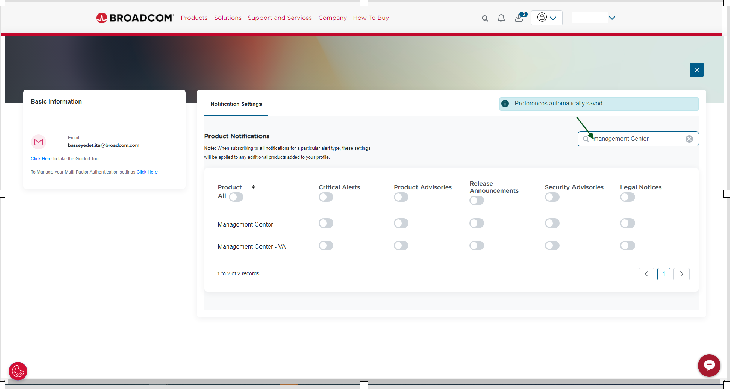 So, you do not miss the release notifications, and more, we recommend to set up these notification alerts on your Broadcom support portal. For requisite guidance on how you can set this up, please refer to the snippets below.