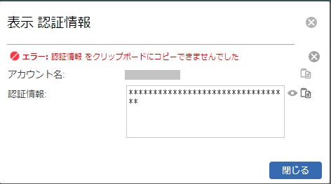 エラー: 認証情報 をクリップボードにコピーできませんでした