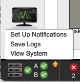 A full set of logs can be generated from the bottom left corner of the Web UI. Select the Up Arrow, then select Save logs. See below.