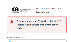 Communication error. Please check the host IP address or port number. Then try the action again.