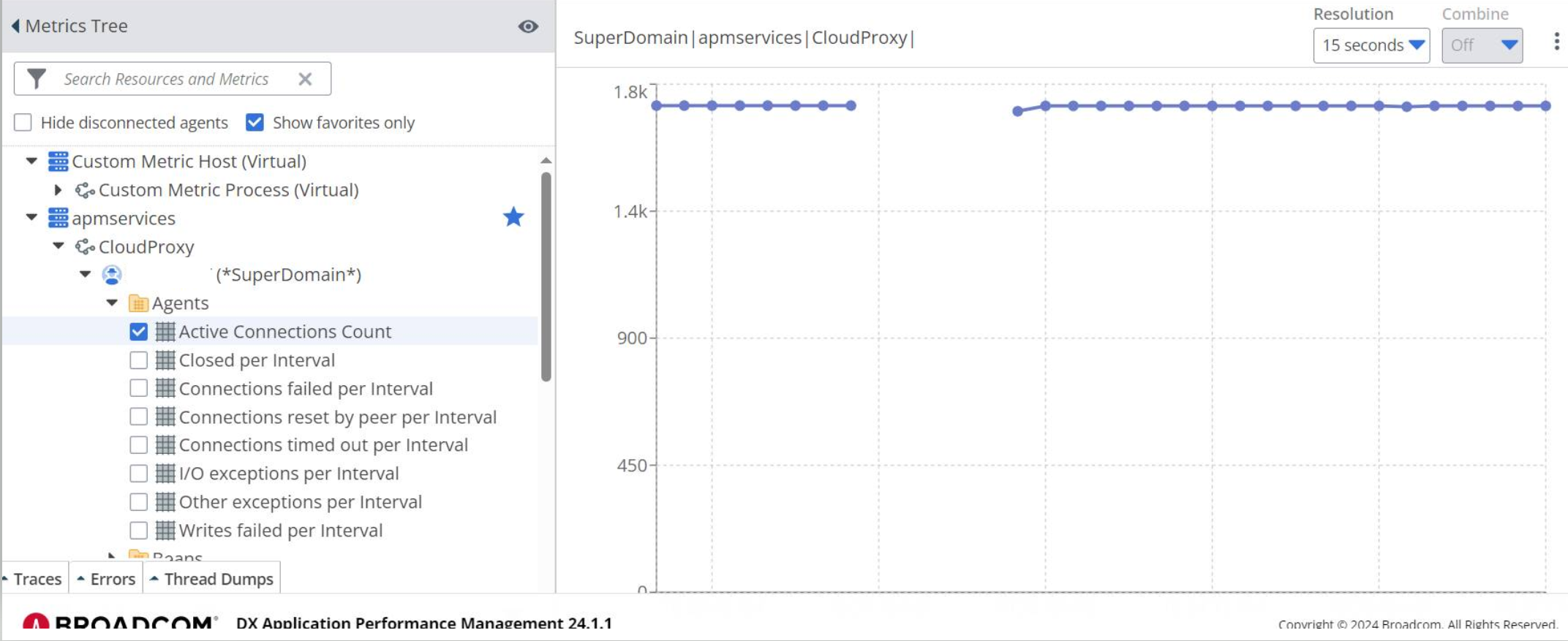 Configure a name for the Cloud Proxy metrics using the apm.server.id configuration parameter. This name is displayed in the metric tree. If you do not configure the value for apm.server.id, Cloud Proxy detects the machine hostname (IP address) and displays it in the metric tree.