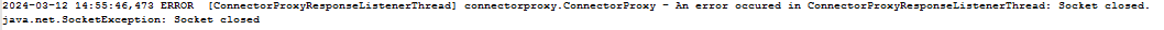 error: " an error occurred in ConnectorProxyResponseListenerThread: Socket closed"