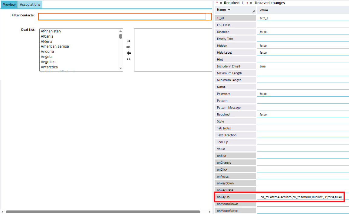 2) Add a Text Field on top of the dual list and add ca_fdFetchSelectData in the onkeyup attribute.