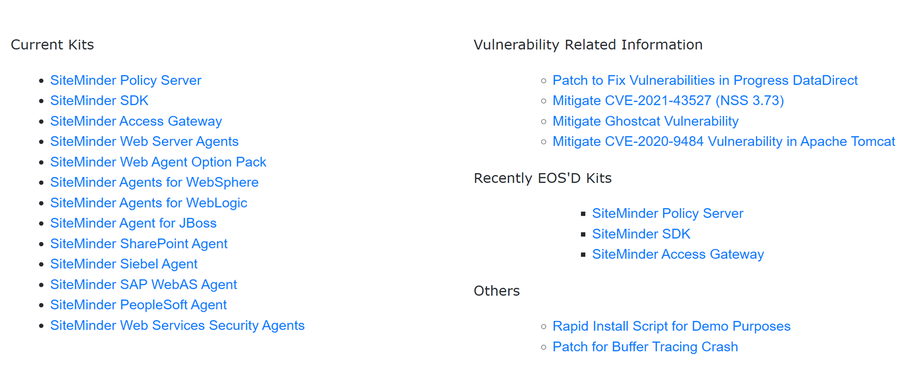 CA Single Sign On Agents (SiteMinder)CA Single Sign On Federation (SiteMinder)CA Single Sign On Secure Proxy Server (SiteMinder)CA Single Sign On SOA Security Manager (SiteMinder)SITEMINDER