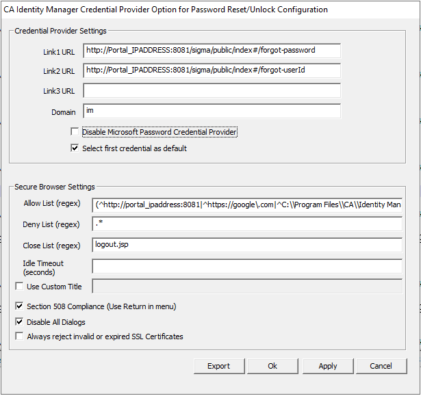 ALLOW = (^http://Portal_IPADDRESS:8081|^https://google\.com|^C:\\Program Files\\CA\\Identity Manager\\Credential Provider\\404\.html|^unreachable\.html)