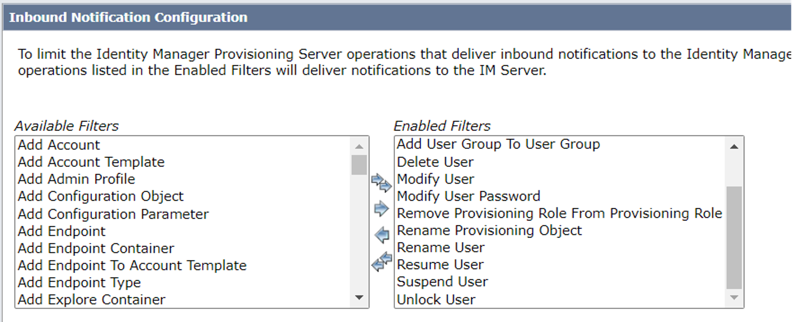 As a bare minimum, the enabled filters must have tasks related to the User object and the Role object. This includes, but is not limited to, operations such as modifying, enabling, deleting, and creating users.