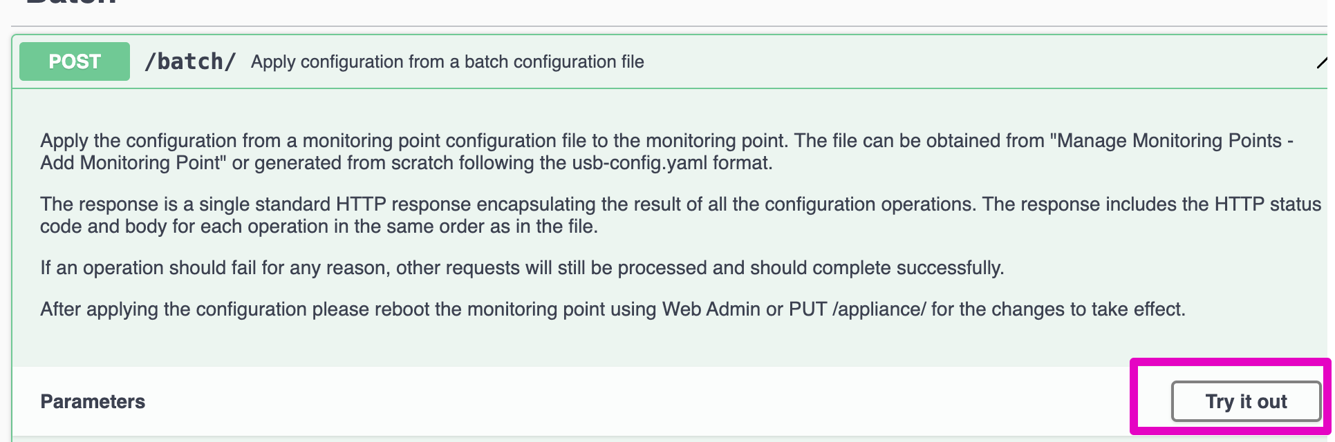 8. Expand the section and click the Try it out button: