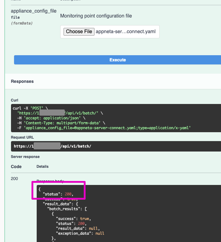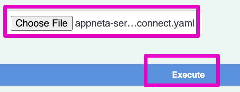 9. Click Choose File, then select the appneta-server-connect.yaml file from step 4, and click the Execute button