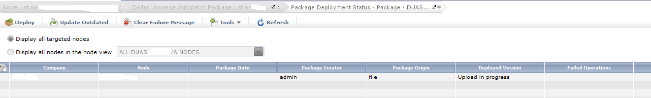 The deployment of the upgrade package to Dollar Universe stays in in "Upload in Progess" status.