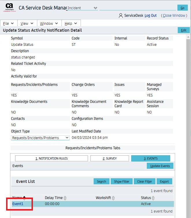 Scenario: A request ticket has been set to "Pending Change". The idea is to attach an event to the request specifically because of this particular status. Other status values should not have this event attached.