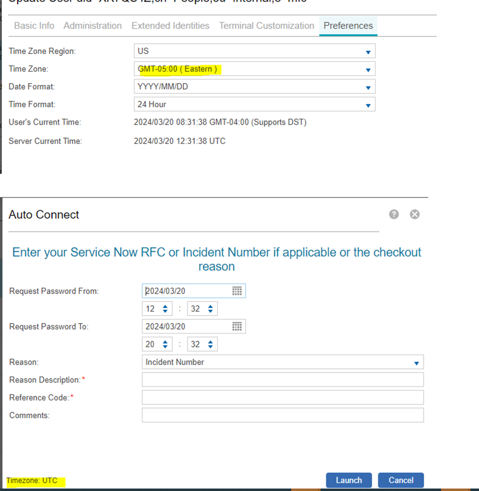 Users time zone preferences not being honored during the Approval Checkout Request.