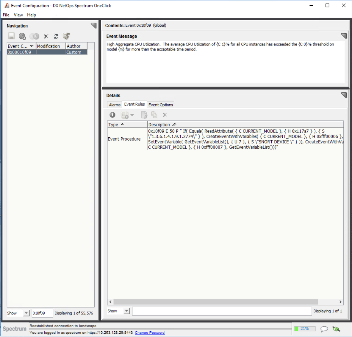 For example, if we want to add the term “SNORT DEVICE : “ to the event message for event type 0x10f09 - High Aggregate CPU Utilization, when the event occurs for certain types of Cisco Devices?