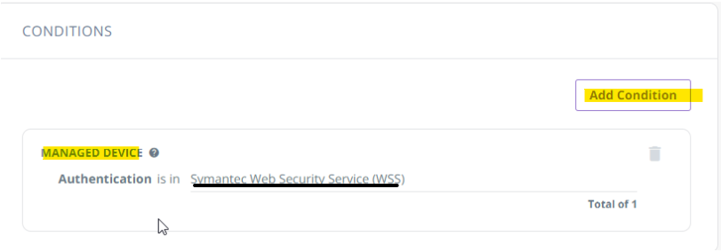 To restrict access for managed devices, a Web access policy condition was enabled to only allow managed device coming in via Cloud SWG/WSS as shown below: