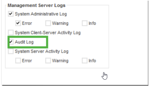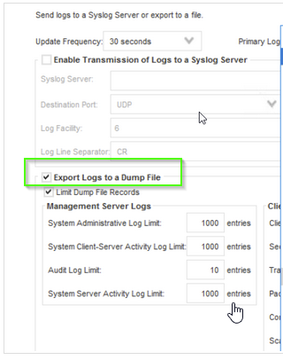 This option is automatically enabled when ”Audit Log” + “Export Logs to a Dump File” options are enabled