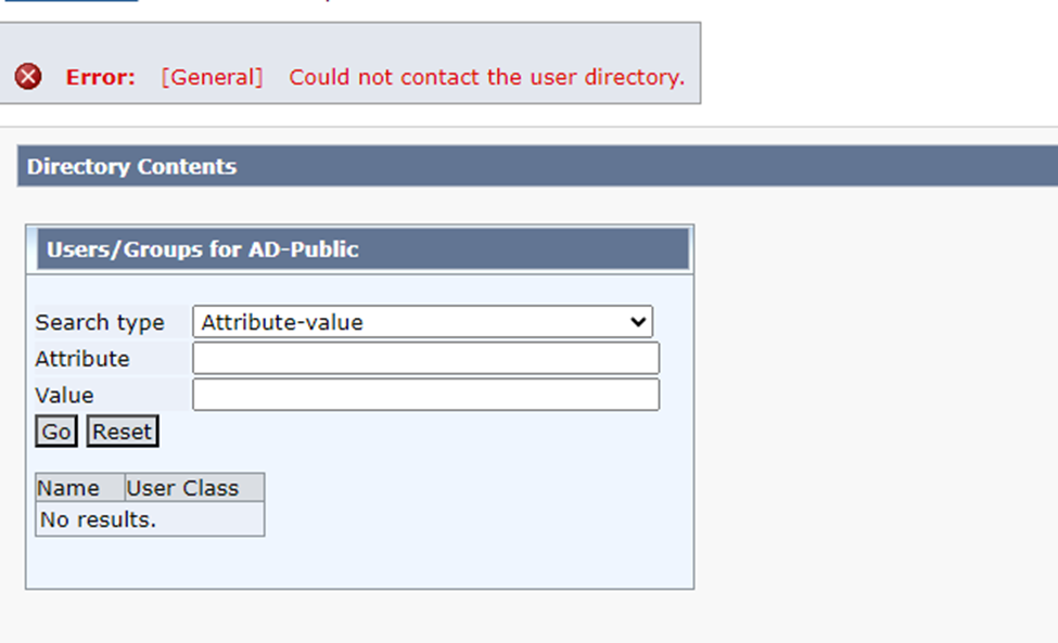 Reviewing the SMSP log revealed errors related to the User Directories that were configured.