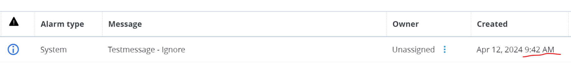 1) From OI Alarms UI (alarm creation time = 9:42 am => CORRECT)