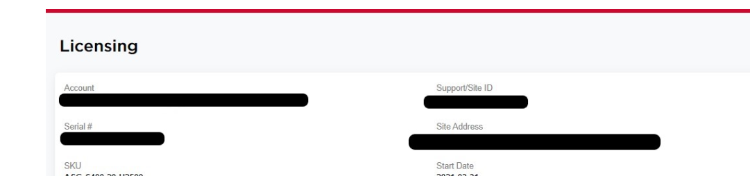 - Click on the License button for the corresponding appliance serial number