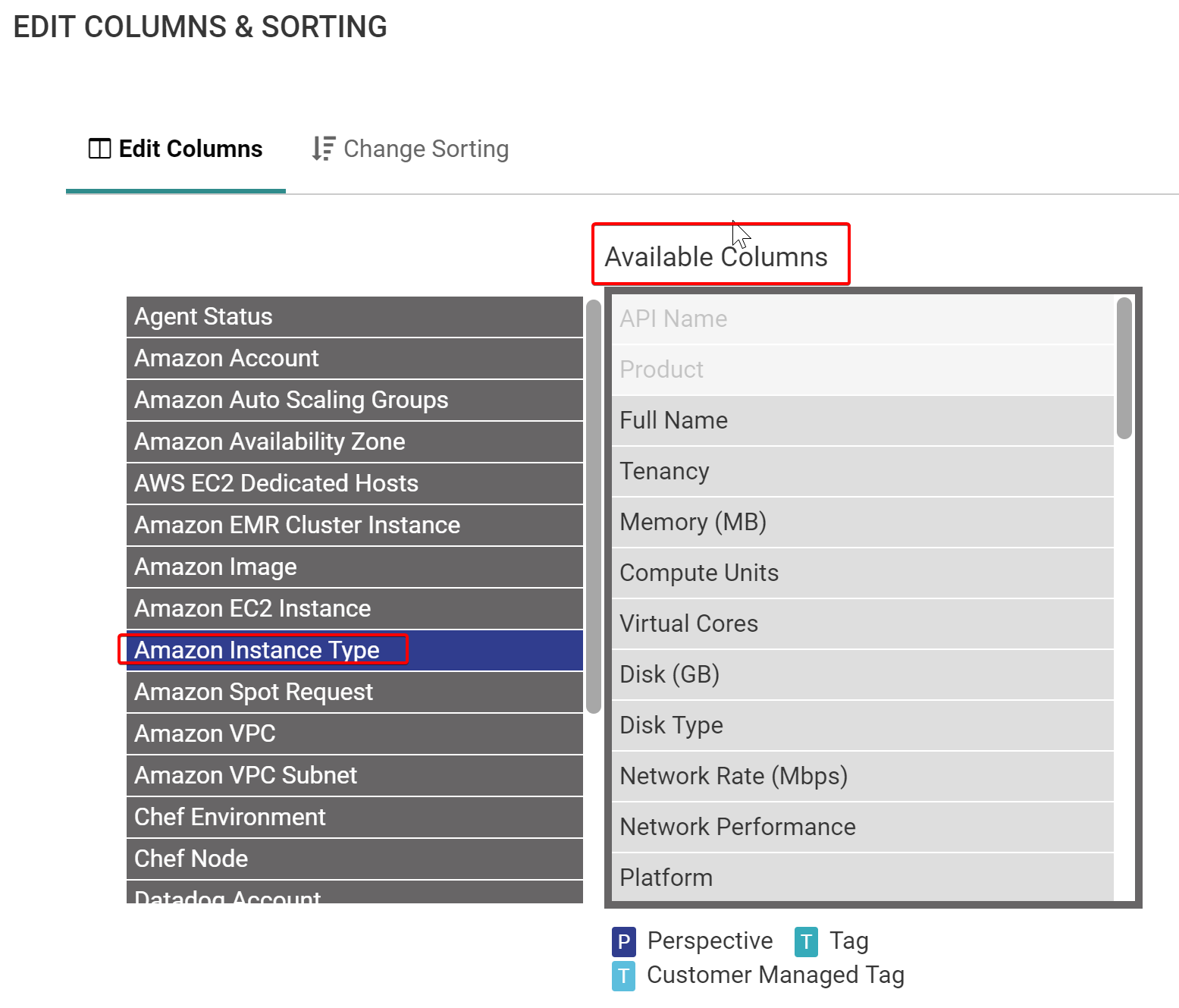 When you select "Edit Columns" the left-hand pane displays all available data sources for the current report.