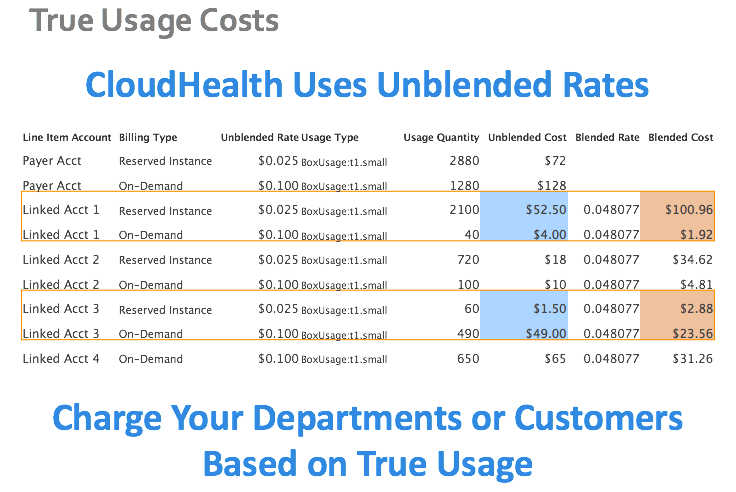 That displays actual cost by showing the actual usage per instance type_per account, the actual hourly price of those instance types, and also the actual discounts attained from reservations per account. Unblended cost is more accurate, it allows for better decision making because it displays actual cost/usage per account and it factors in the impact of Reserved Instances per account.