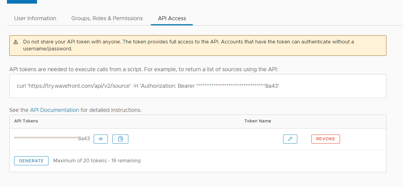 He will now have access to Generate the API tokens and can use it to deploy wftop on the system.