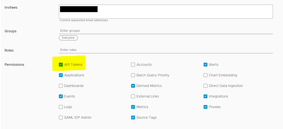 Select "API Token " permissions along with other set of default permissions which user needs .