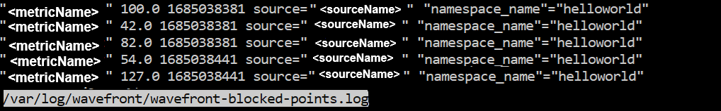 Open the <wavefront_config_path>/log4j2.xml configuration file and uncomment the BlockedPointsFile section and RawBlockPoints Logger and set the level="INFO".