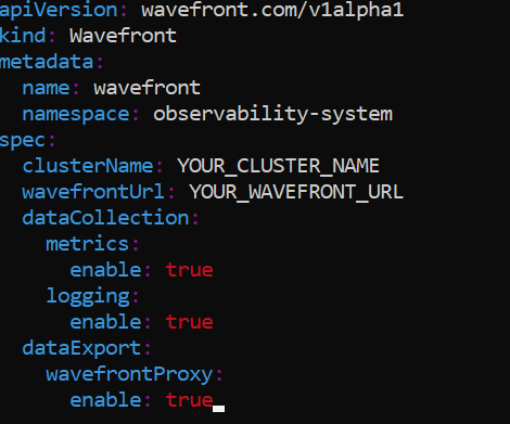 wavefront.yamlfile, for example:# Need to change YOUR_CLUSTER_NAME, YOUR_WAVEFRONT_URL accordingly