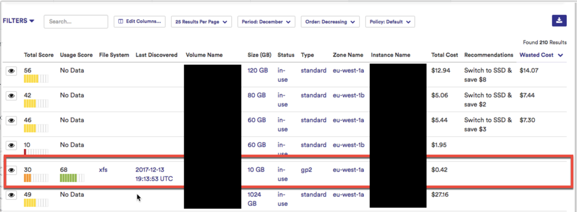 The Usage Score metric is in reference to the file system attached to the volume. If a volume's attached instance does not have a mounted file system, this metric will not populate.