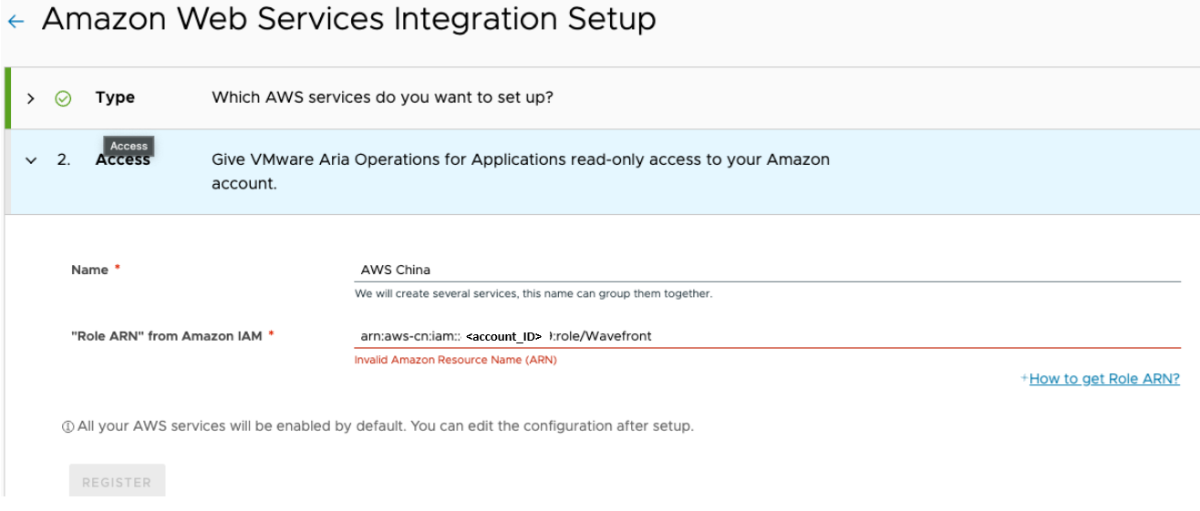 - Invalid Amazon Resource Name (ARN) :arn:aws-cn:iam::<account_id>:role/Wavefront