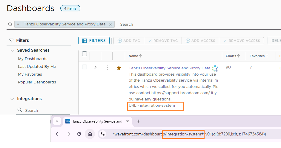 - The dashboard ID is needed and can be extracted from the link to the dashboard: https://<cluster>.wavefront.com/dashboards/<id>#.