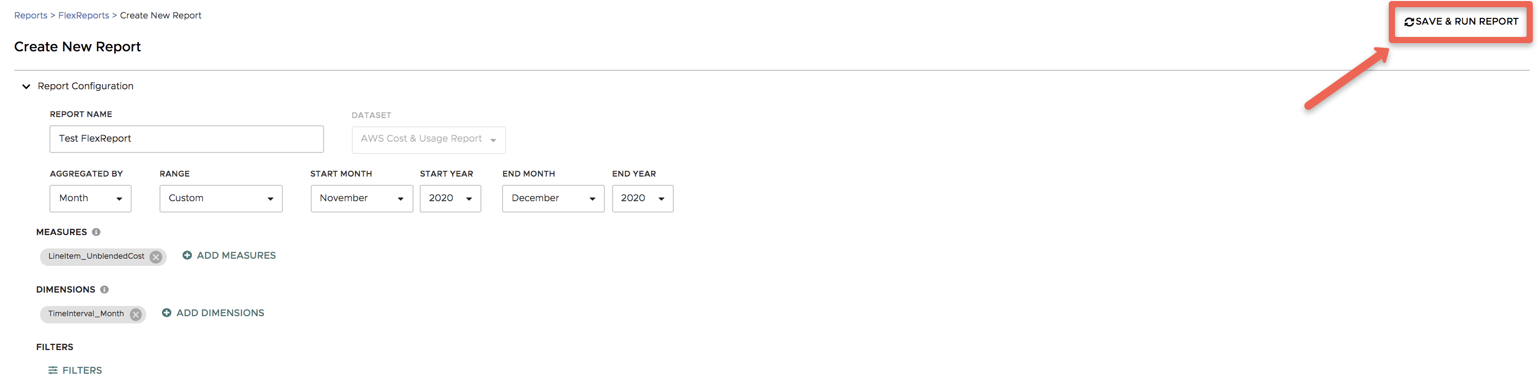 Once you are done configuring the parameters associated to your custom FlexReport, click the "Save & Run Report" button in the upper right corner of the page:
