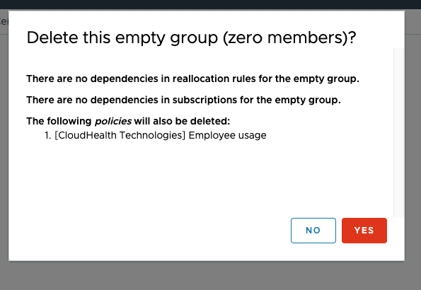 Selecting YES will delete the empty group and Policy or other item dependent on it.