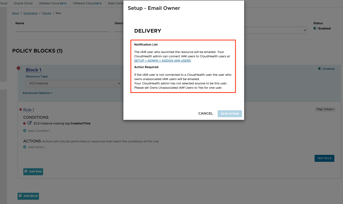 Once IAM Users are assigned to Users in the platform, the Assets report column "Owner Email" will populate which will trigger the Policy action to email the IAM User who launched the instance.