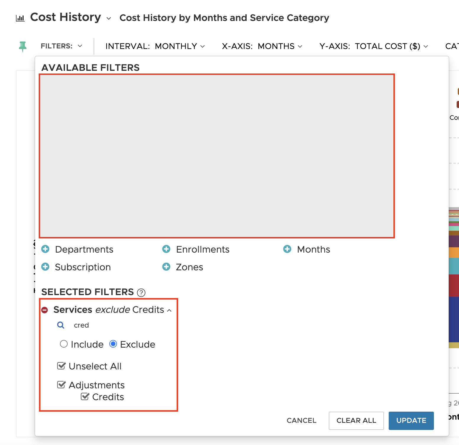 Alternatively, you can exclude the credits from the Cost History report if you are looking to align to "Total charges".