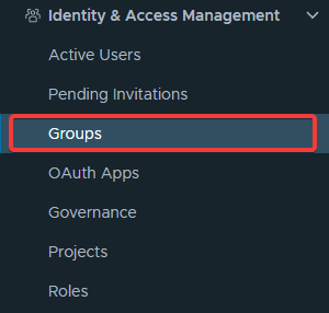 7. Ensure you have navigated back to the CSP Organization associated with Tanzu CloudHealth and select the Identity & Access Management -> Groups option marked below -