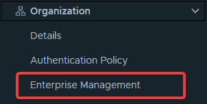 2. Determine if the CSP Organization has been mapped to the Management Organization. By switching to the CSP Organization linked to Tanzu CloudHealth. Select Organization -> Enterprise Management.