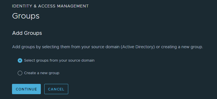 8. Within the page displayed select the "Select Groups from your source domain" option -
