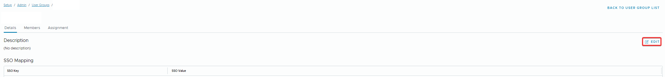 This will open the following page that allows you to define a SSO Key (Attribute) and SSO Value. The SSO Key that will need to be used is "group_names" and the value will be the name of the group as it appear in CSP within the Identity & Access Management -> Groups tab