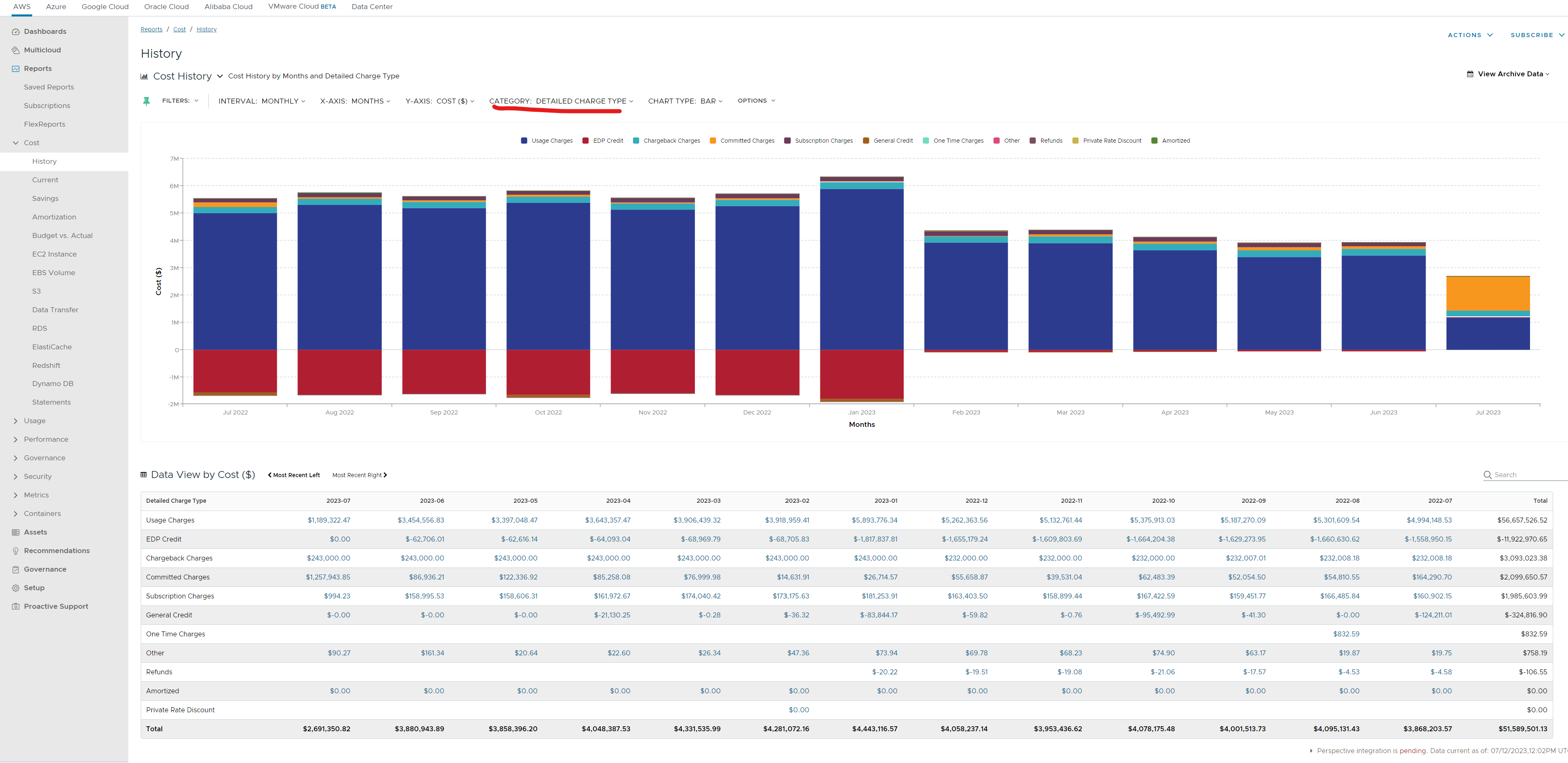 Usually, the monthly cost remains roughly the same. There may be situations where credits balance out the costs for specific items during those months. The final amount is shown, but if data is organized based on the specific types of expenses it can illustrate charges in a easier to understand way.