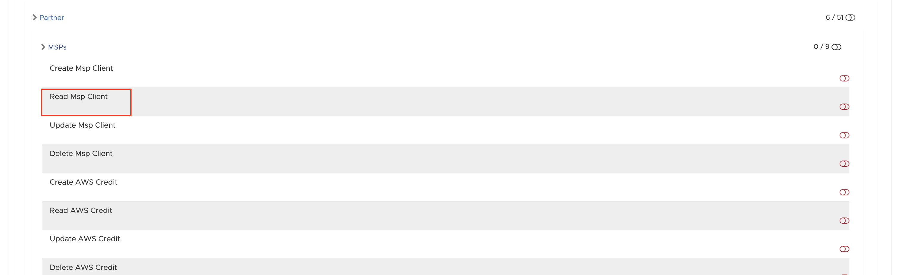 The roles/role documents need the "Read MSP Client" permission enabled to be able to switch between channel customers: